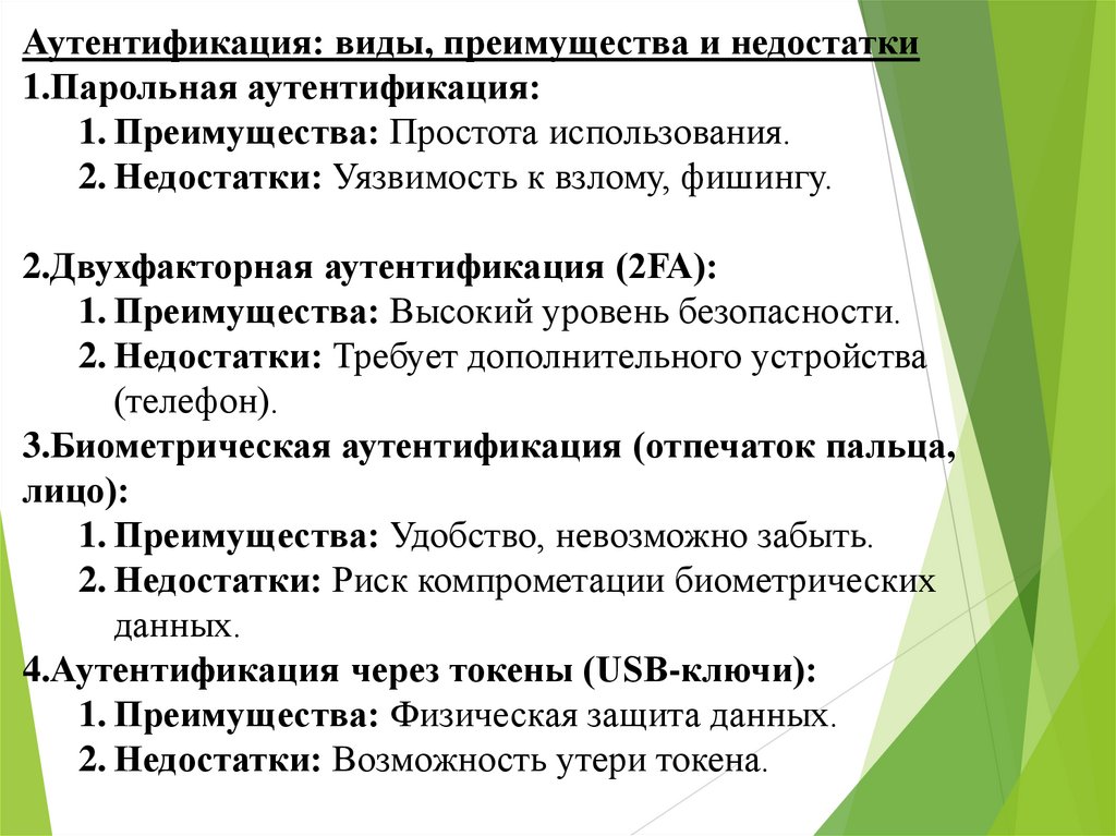 Аутентификация: виды, преимущества и недостатки1.Парольная аутентификация: