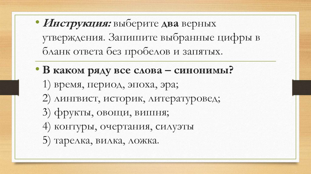 • Инструкция: выберите два верныхутверждения. Запишите выбранные цифры в