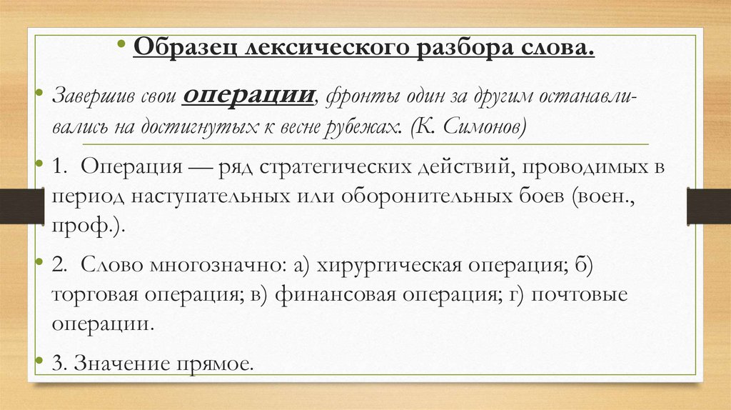 • 2. Слово многозначно: а) хирургическая операция; б)