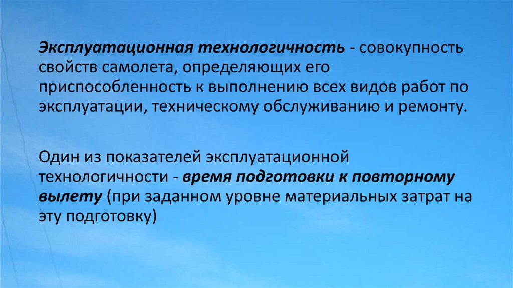 Эксплуатационная технологичность - совокупностьсвойств самолета, определяющих его