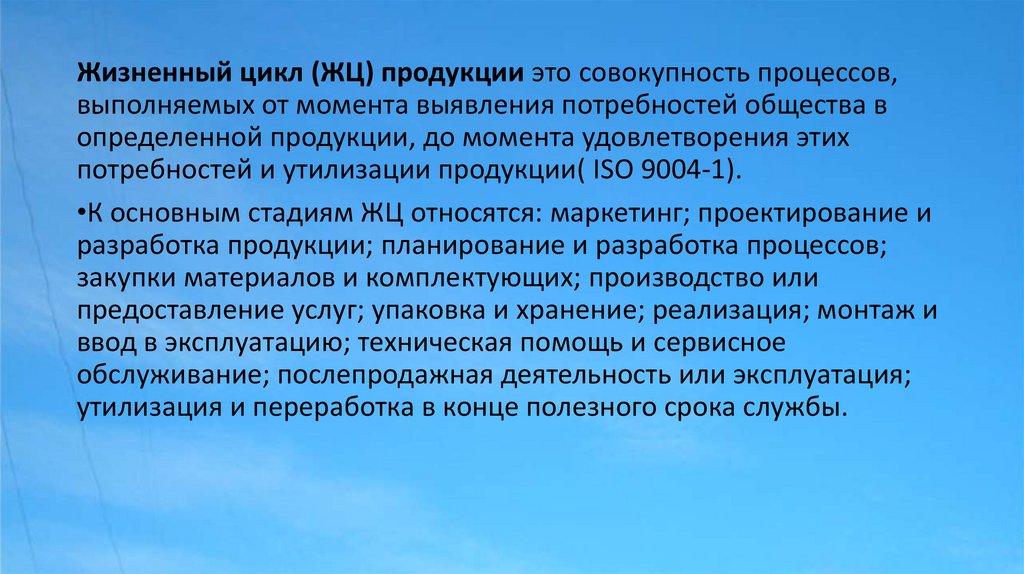 Жизненный цикл (ЖЦ) продукции это совокупность процессов,выполняемых от момента выявления потребностей общества в