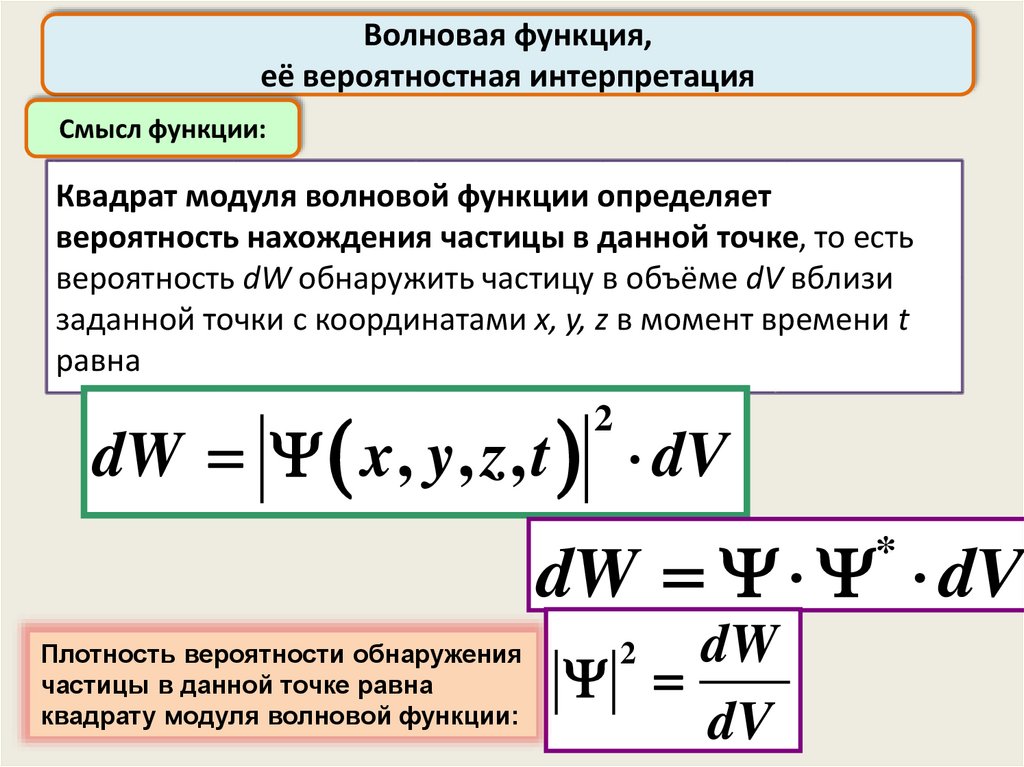 вероятность dW обнаружить частицу в объёме dV вблизи