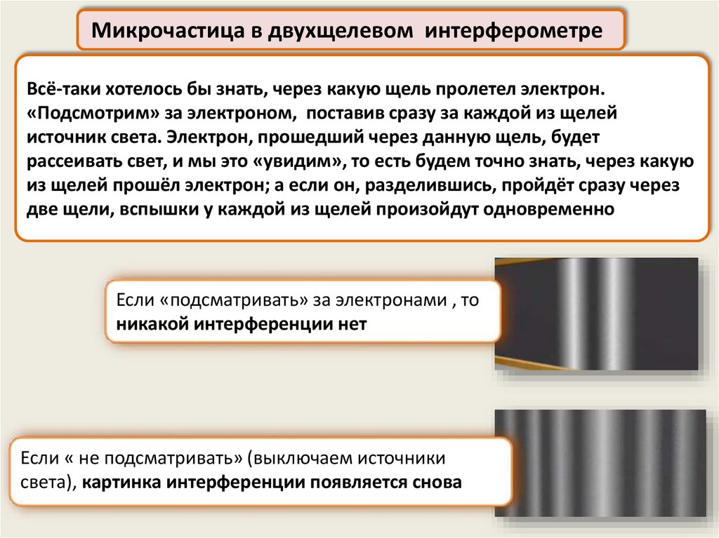 Микрочастица в двухщелевом интерферометреВсё-таки хотелось бы знать, через какую щель пролетел электрон.