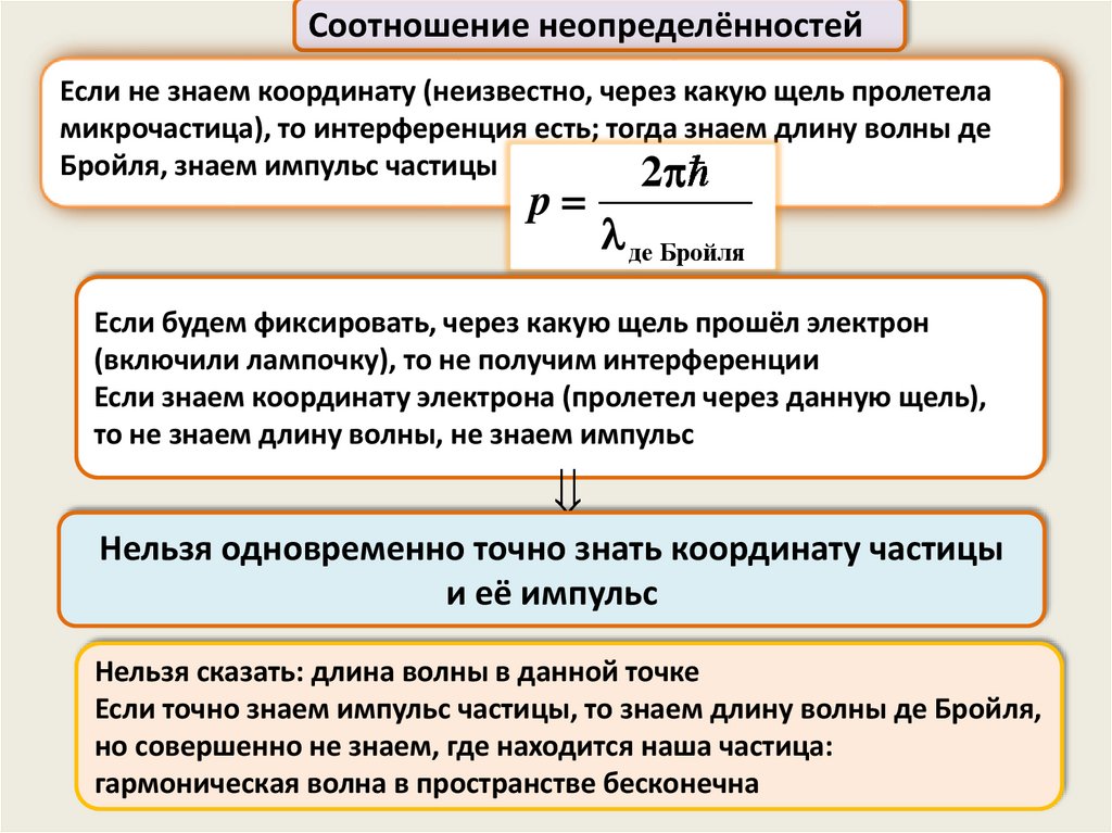 Соотношение неопределённостейЕсли не знаем координату (неизвестно, через какую щель пролетела