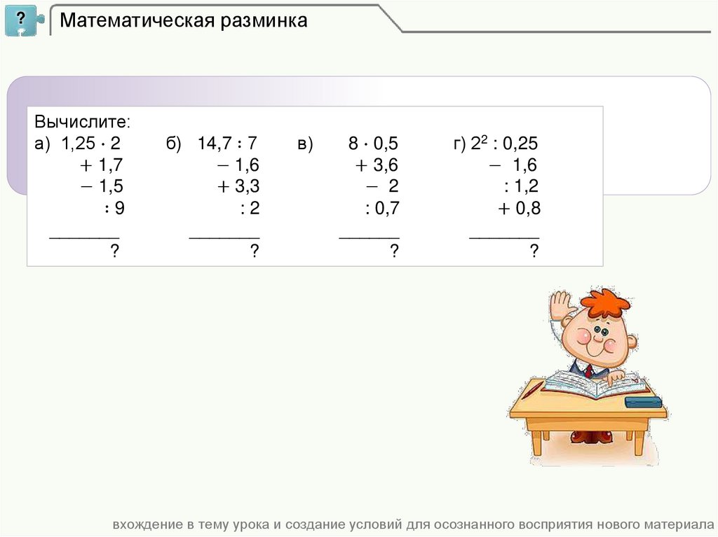 вхождение в тему урока и создание условий для осознанного восприятия нового материала