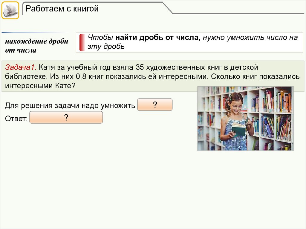 Ответ: 35 ∙ 0,8 = ?28 (книг)