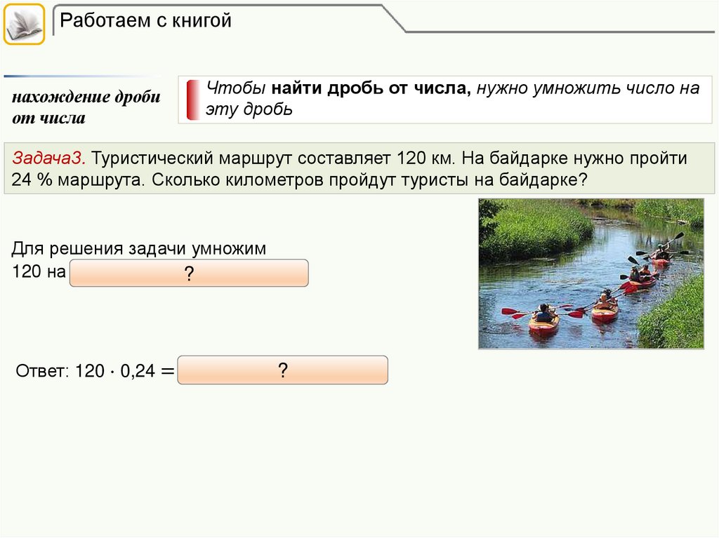 24 % маршрута. Сколько километров пройдут туристы на байдарке?