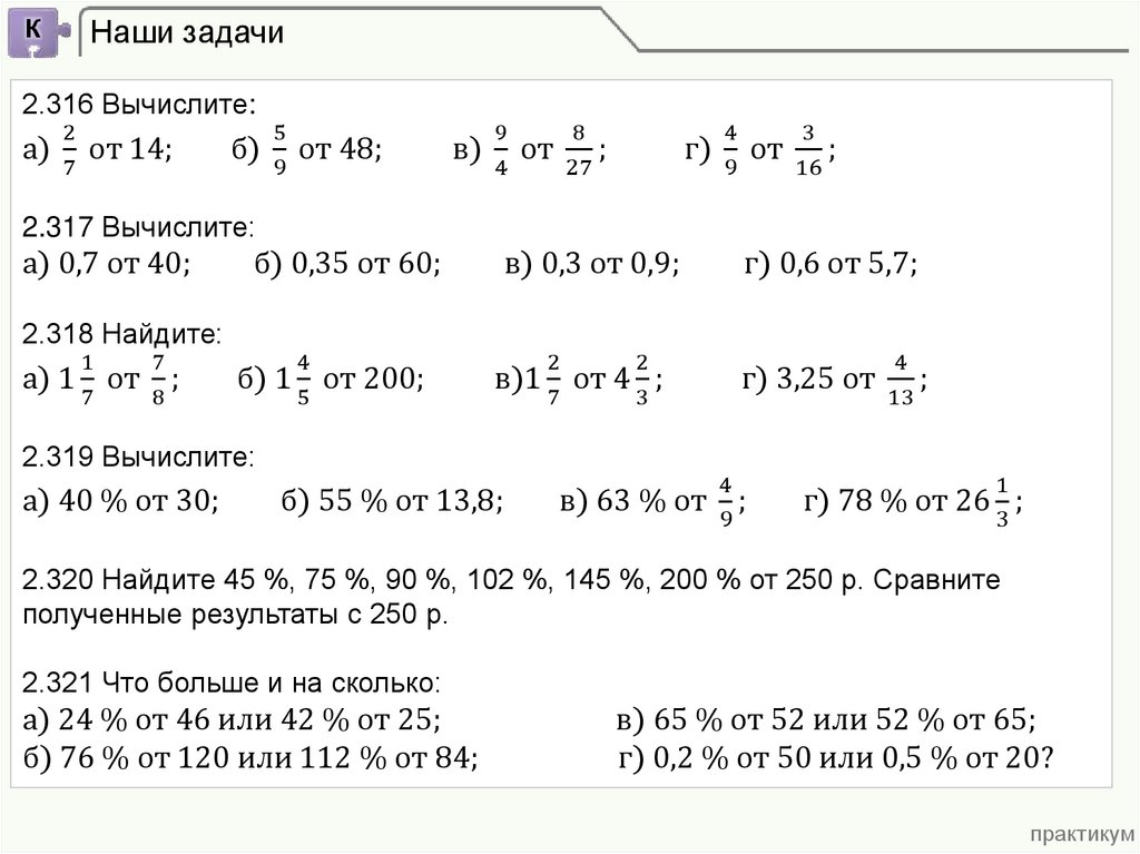 2.320 Найдите 45 %, 75 %, 90 %, 102 %, 145 %, 200 % от 250 р. Сравните