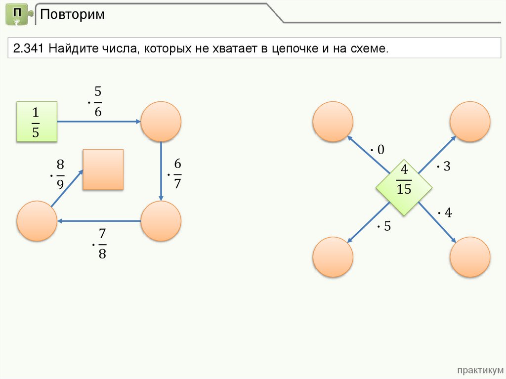 2.341 Найдите числа, которых не хватает в цепочке и на схеме.