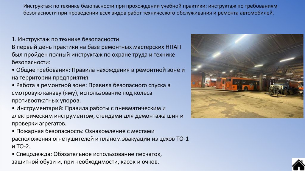 Инструктаж по технике безопасности при прохождении учебной практики: инструктаж по требованиямбезопасности при проведении всех видов работ технического обслуживания и ремонта автомобилей.