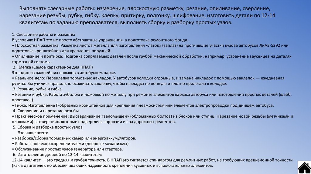 • Резание и рубка: Работа зубилом и ножовкой по металлу при ремонте элементов каркаса автобуса или изготовлении простых деталей (шайб,