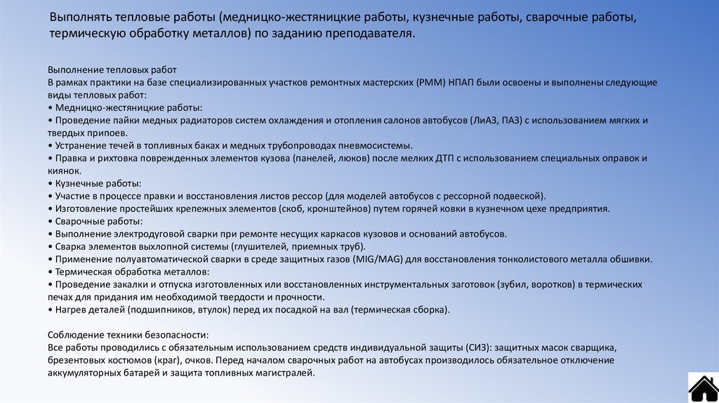 • Выполнять тепловые работы (медницко-жестяницкие работы, кузнечные работы, сварочные работы,