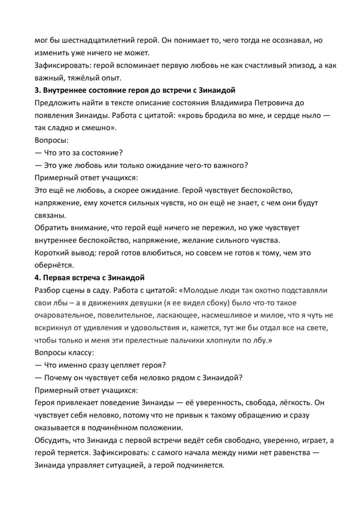 появления Зинаиды. Работа с цитатой: «кровь бродила во мне, и сердце ныло —