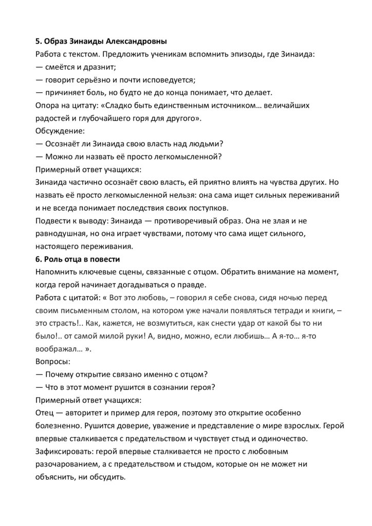 5. Образ Зинаиды АлександровныРабота с текстом. Предложить ученикам вспомнить эпизоды, где Зинаида: