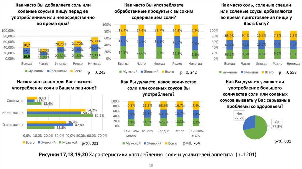 значимо 25,5%. 77,3% респондентов ответили, что употребление большого количества соли или соленых соусов вызывают серьезные проблемы со