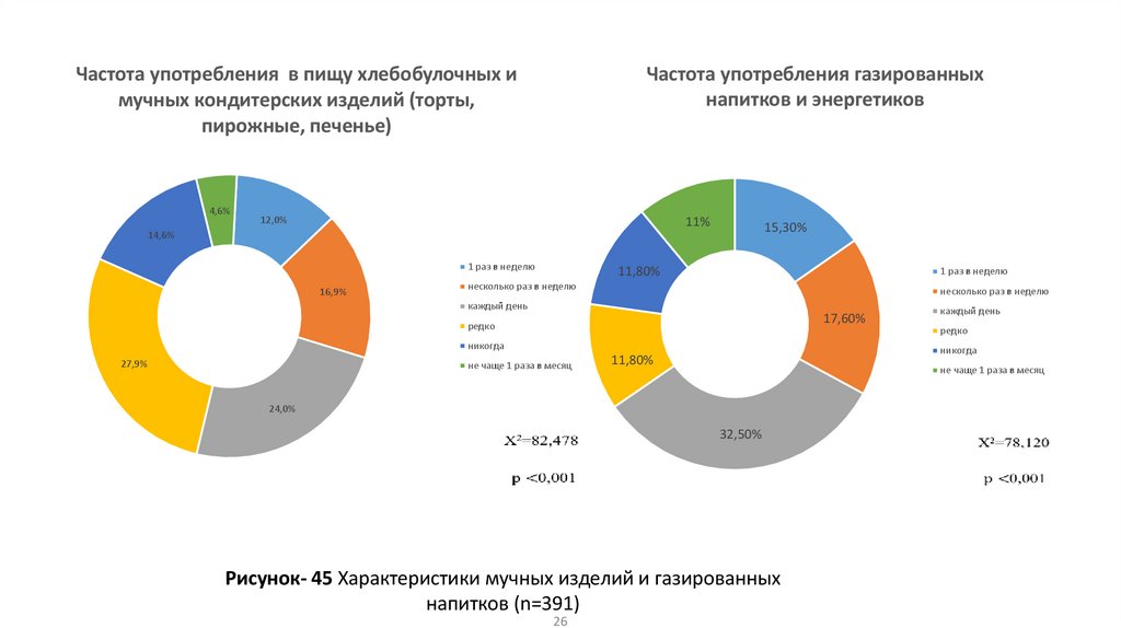 хлебобулочные и мучные-кондитерские изделия - 23%, более того 29,4% жителей часто употребляют газированные напитки и энергетики. У 30,10%
