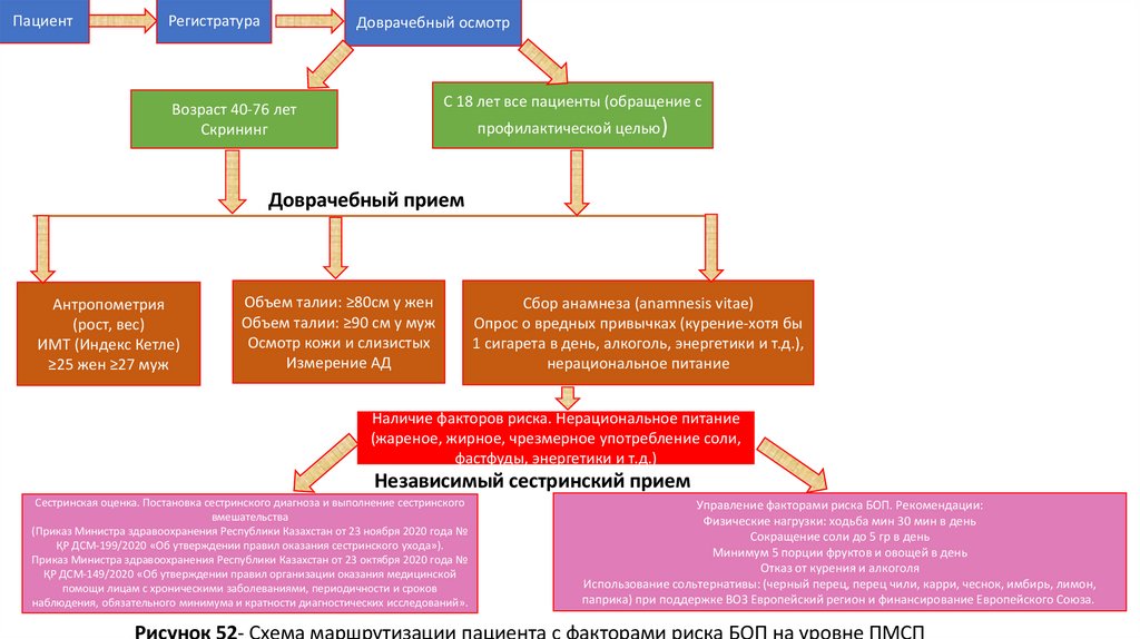 Рисунок 52- Схема маршрутизации пациента с факторами риска БОП на уровне ПМСП