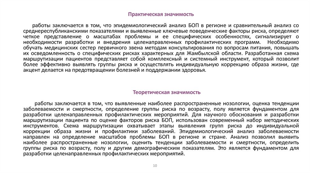 здравоохранения с целью профилактических мер по развитию факторов риска НИЗ, в том числе БОП на первичном уровне.