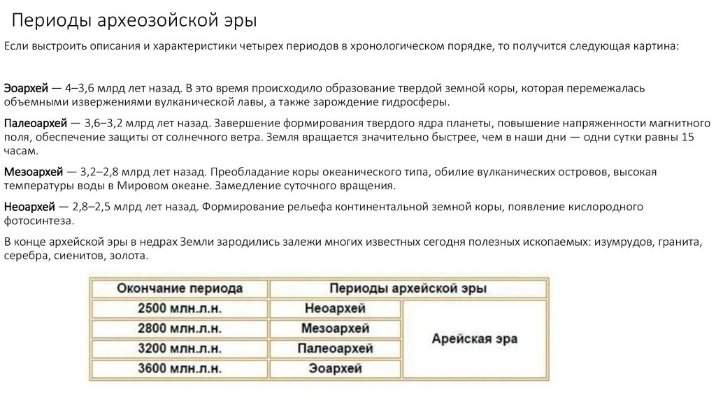 Основные сведения об архейской эре —основные этапы развития жизни