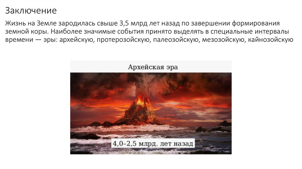 ЗаключениеЖизнь на Земле зародилась свыше 3,5 млрд лет назад по завершении формирования