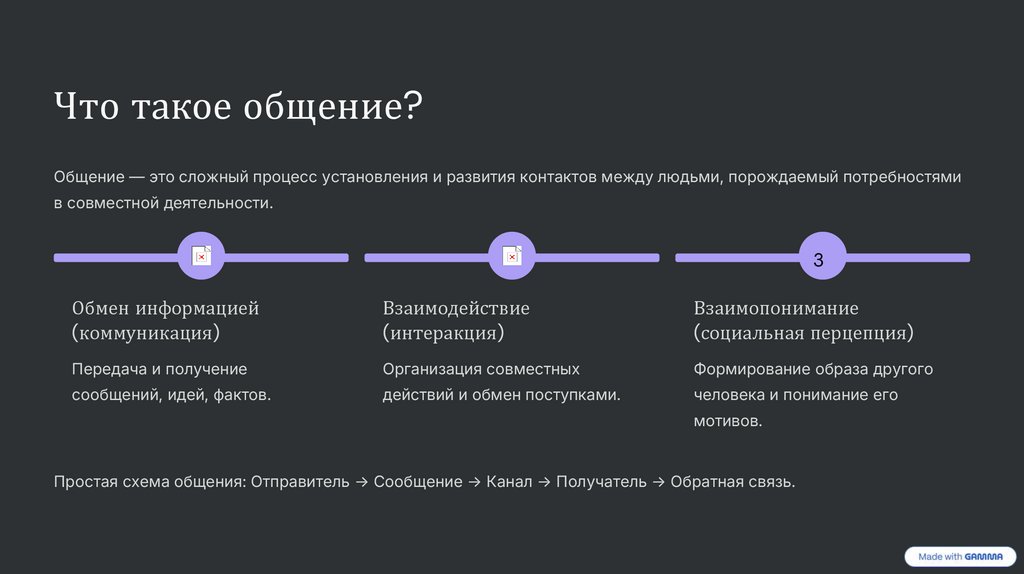 Что такое общение?Общение — это сложный процесс установления и развития контактов между людьми, порождаемый потребностями