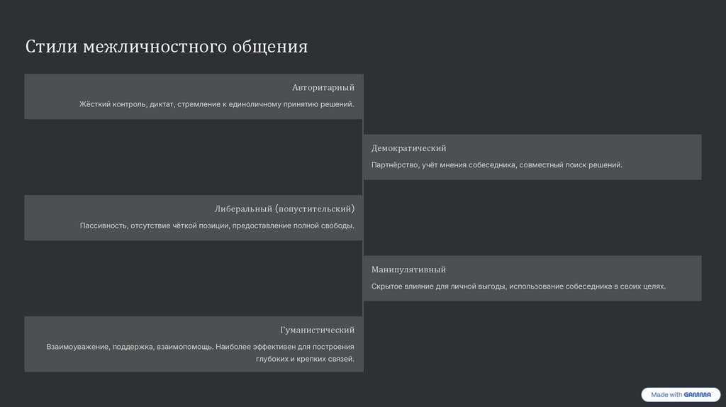 Взаимоуважение, поддержка, взаимопомощь. Наиболее эффективен для построения