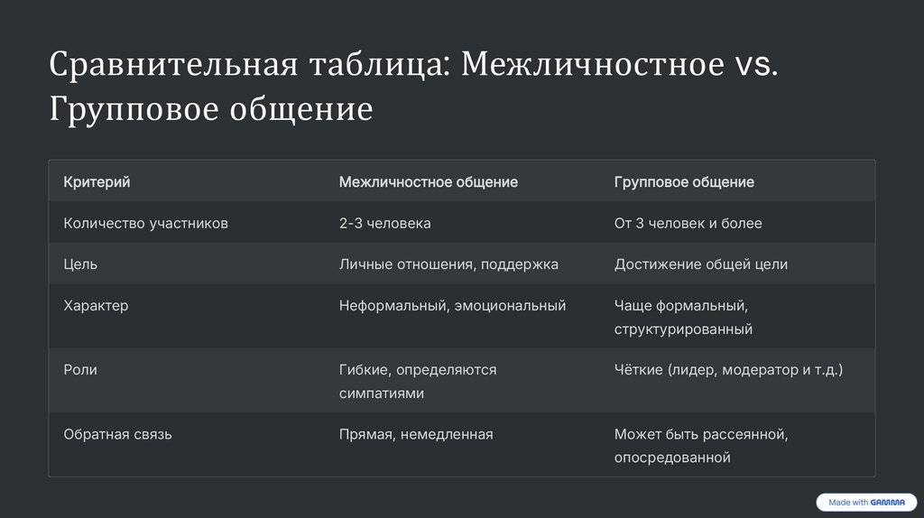 Сравнительная таблица: Межличностное vs.Групповое общение