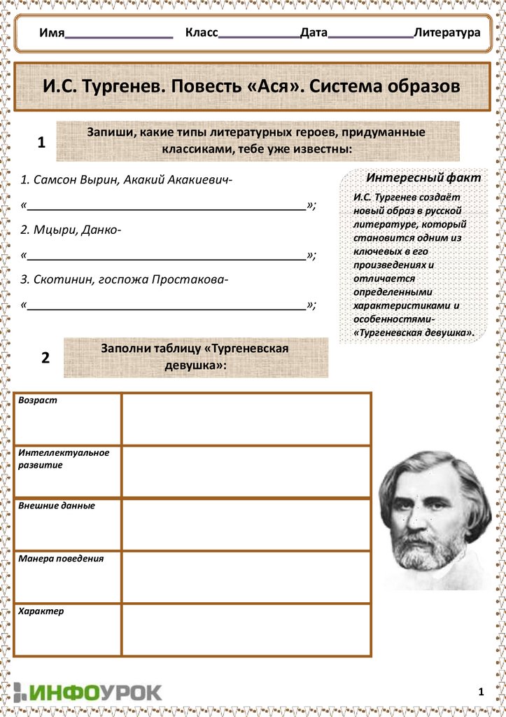 1. И.С. Тургенев. Повесть «Ася». Система образов