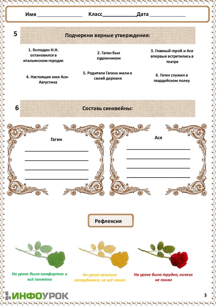 Заполни таблицу «Тургеневская
