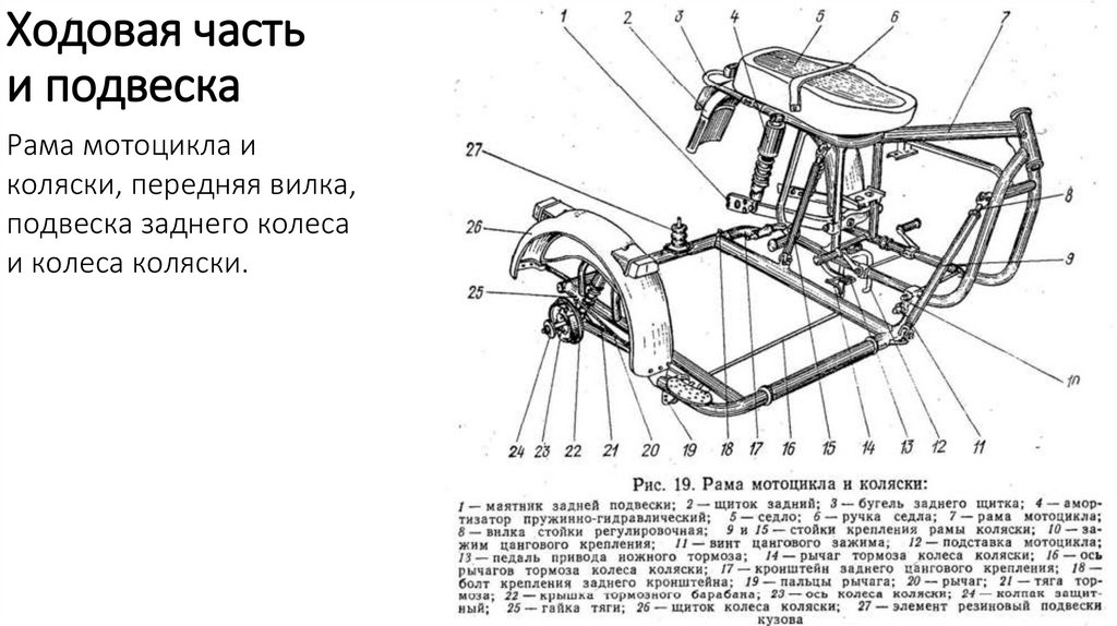 коляской. Мотоцикл для перевозки водителя и двух пассажиров.