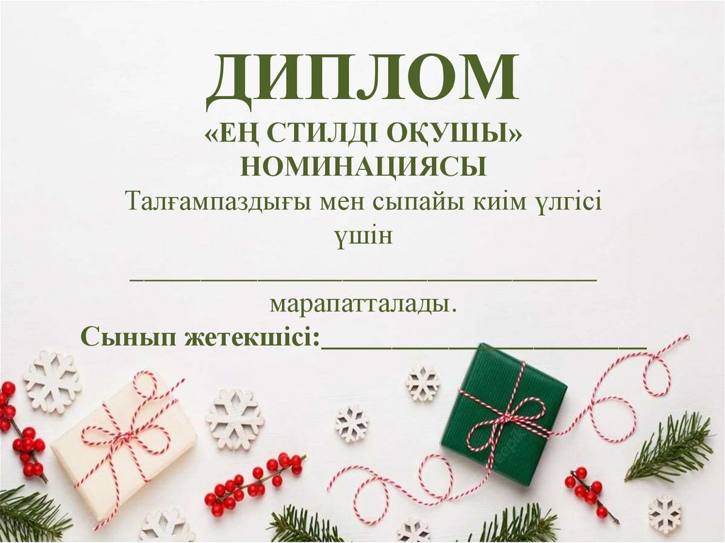 ДИПЛОМ«ЕҢ СТИЛДІ ОҚУШЫ»