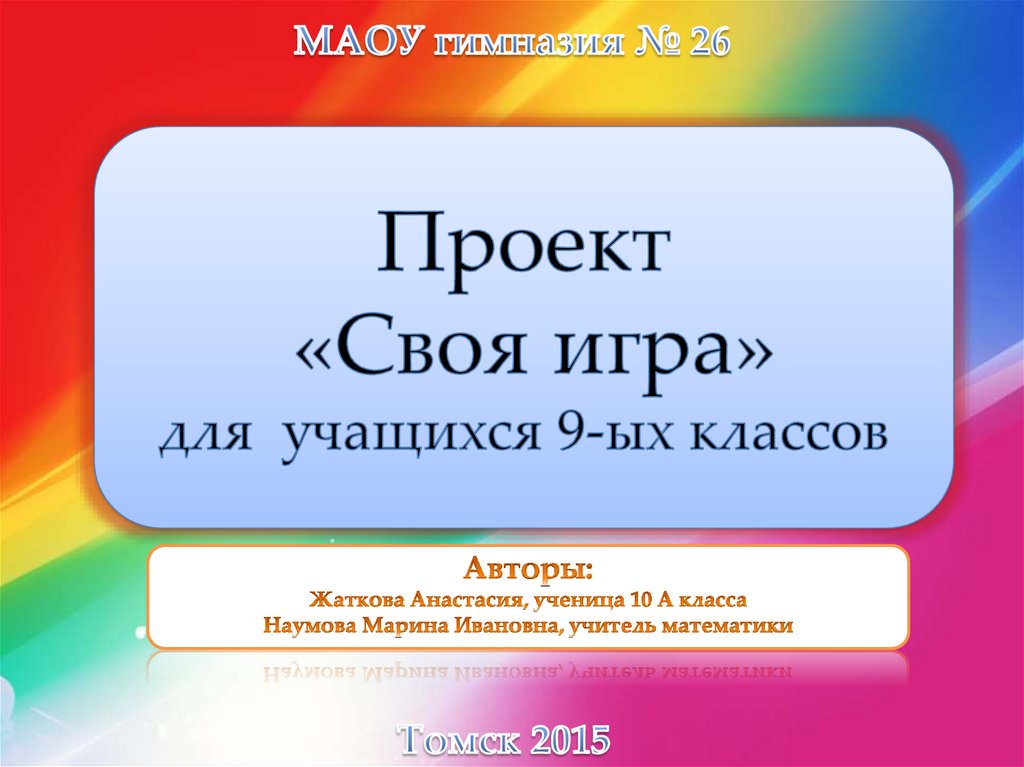 1. Проект «Своя игра» для учащихся 9-ых классов