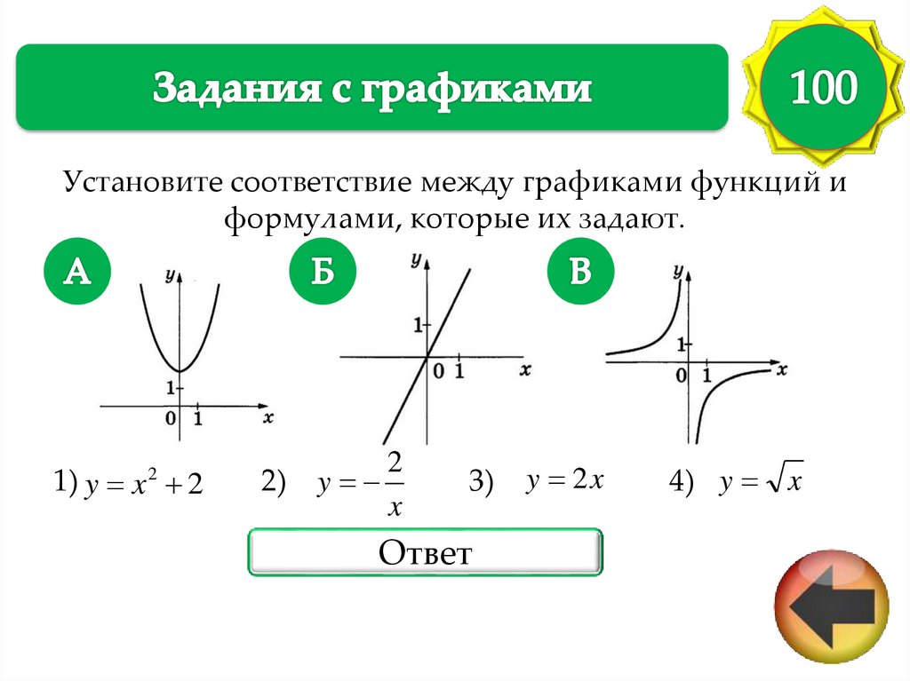 Установите соответствие между графиками функций иформулами, которые их задают.