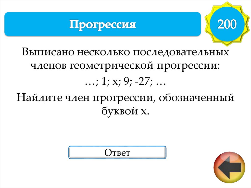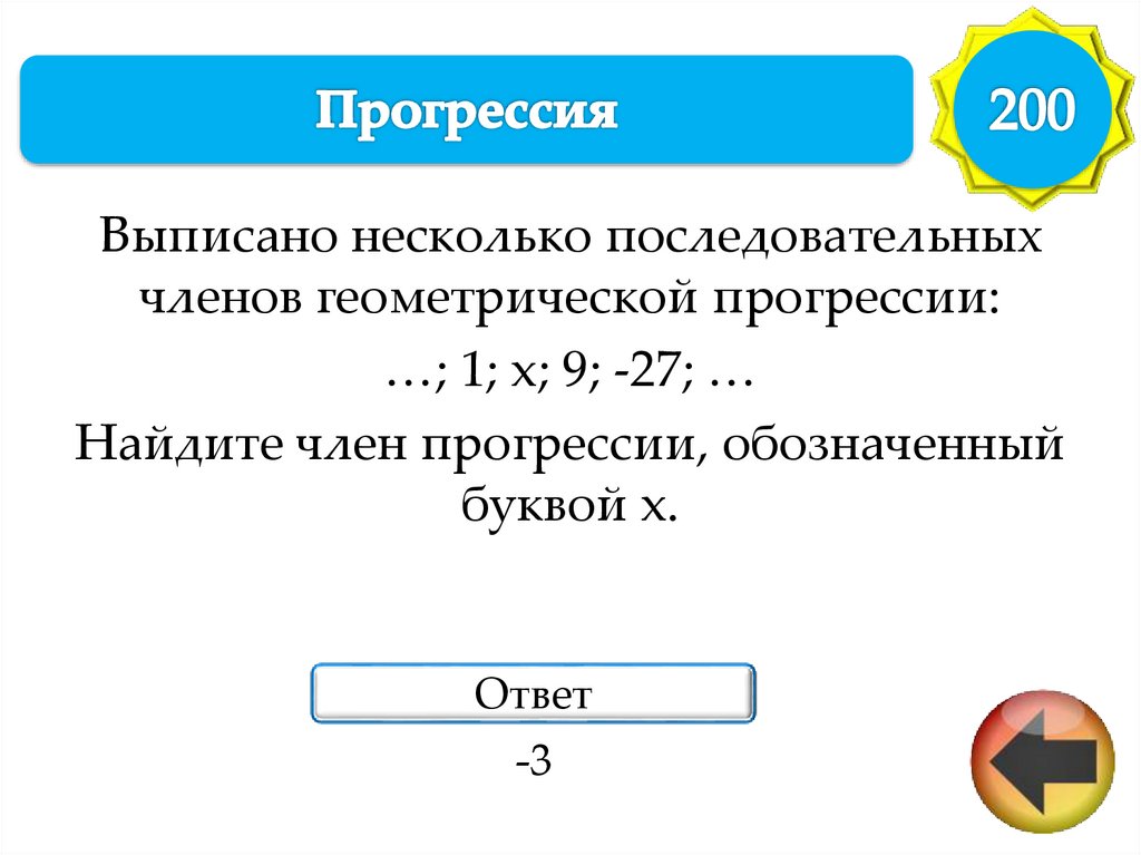 Выписано несколько последовательныхчленов геометрической прогрессии: