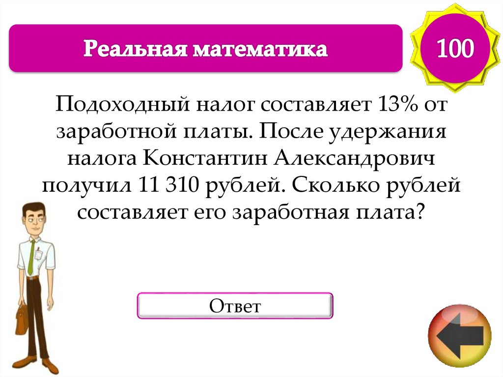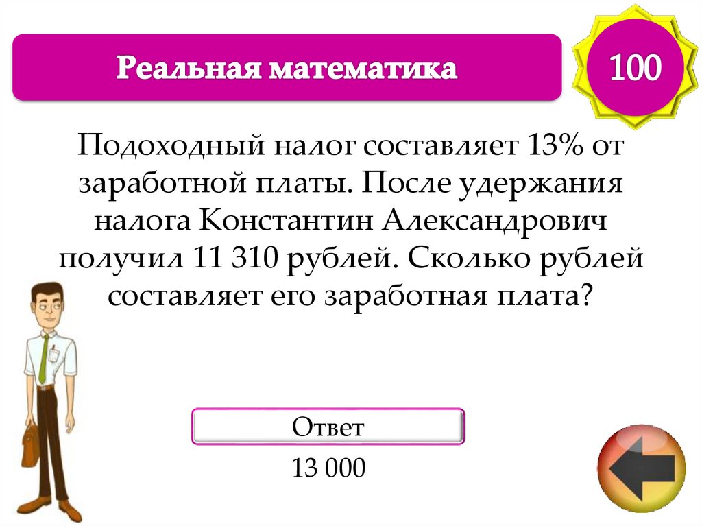 Подоходный налог составляет 13% отзаработной платы. После удержания