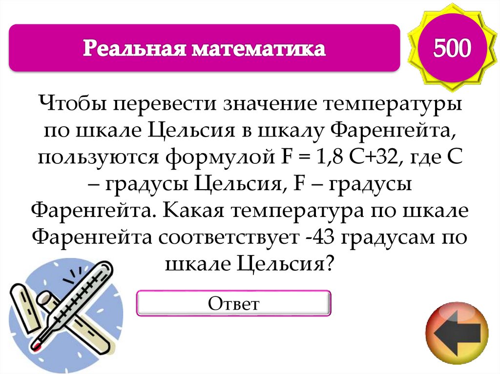 Чтобы перевести значение температурыпо шкале Цельсия в шкалу Фаренгейта,