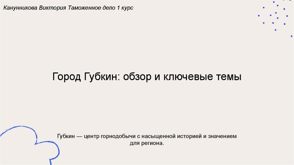Канунникова Виктория Таможенное дело 1 курсГород Губкин: обзор и ключевые темы