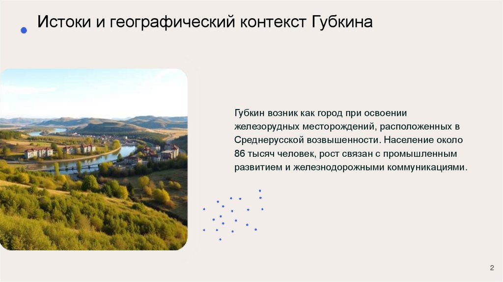 Истоки и географический контекст ГубкинаГубкин возник как город при освоении