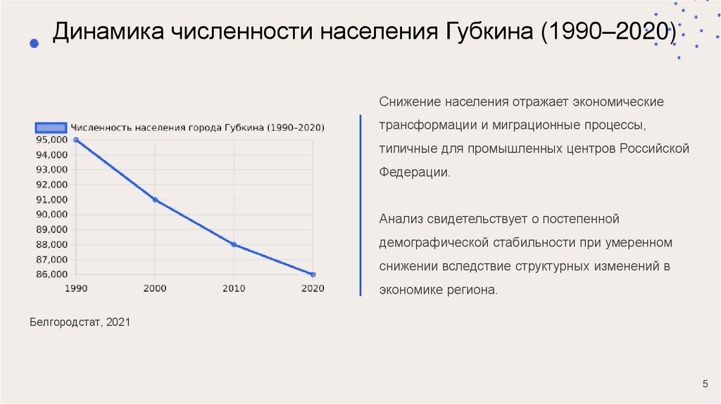 Динамика численности населения Губкина (1990–2020)Снижение населения отражает экономические