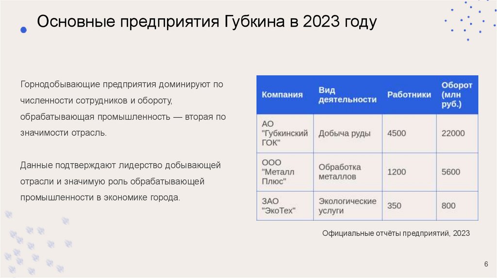 Основные предприятия Губкина в 2023 годуГорнодобывающие предприятия доминируют по