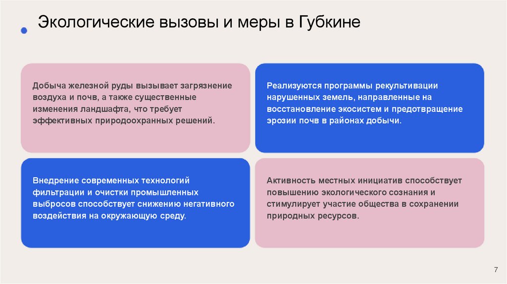 Экологические вызовы и меры в ГубкинеДобыча железной руды вызывает загрязнение