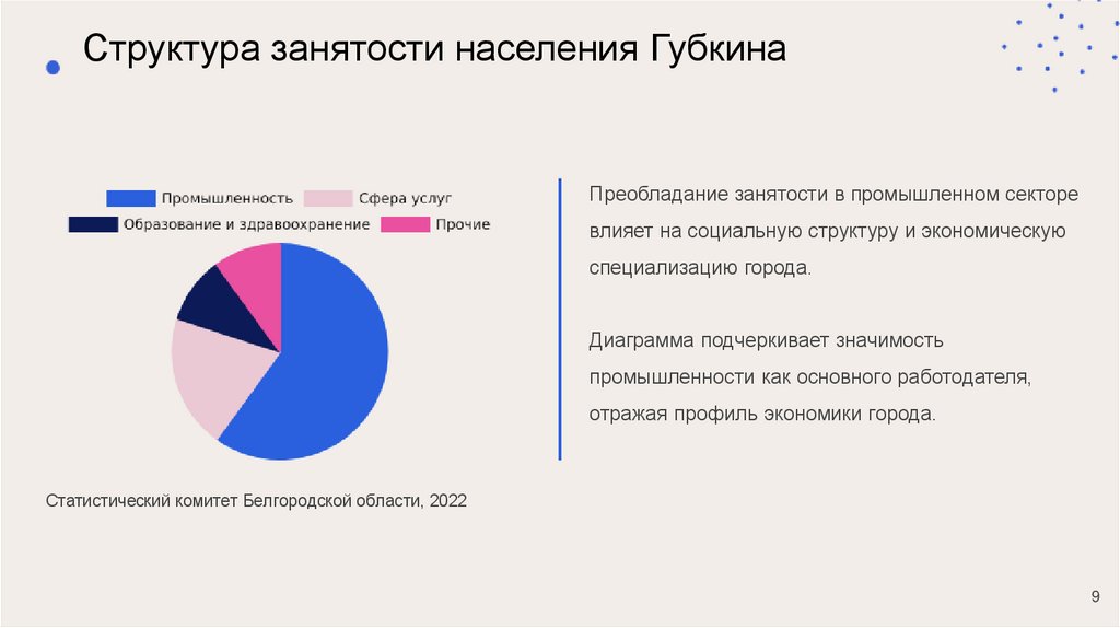 Структура занятости населения ГубкинаПреобладание занятости в промышленном секторе