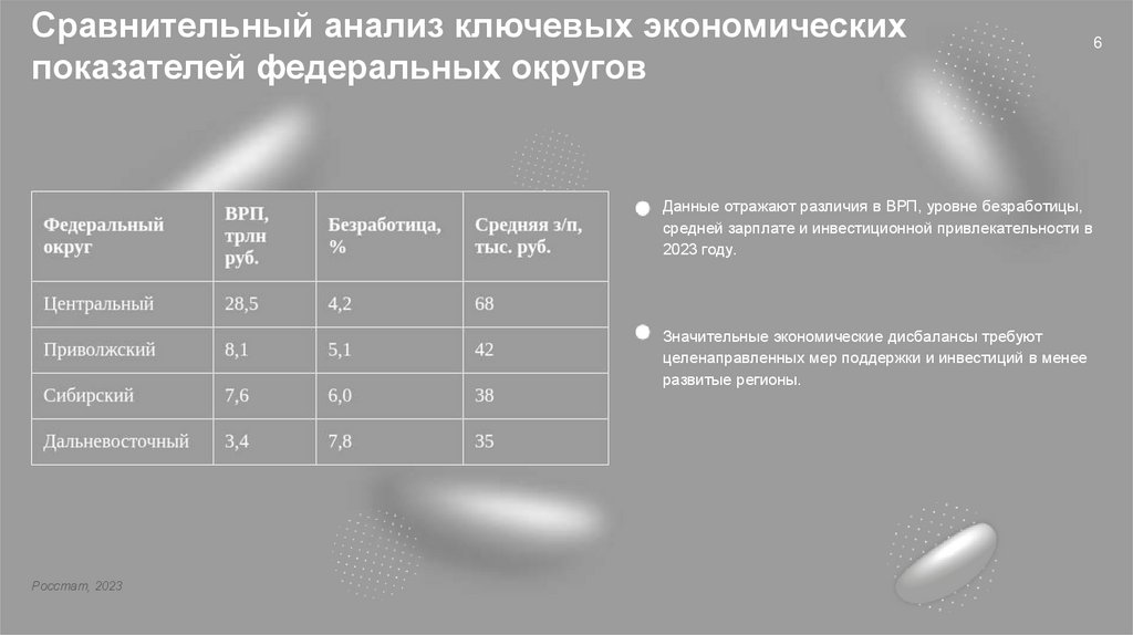 Сравнительный анализ ключевых экономическихпоказателей федеральных округов