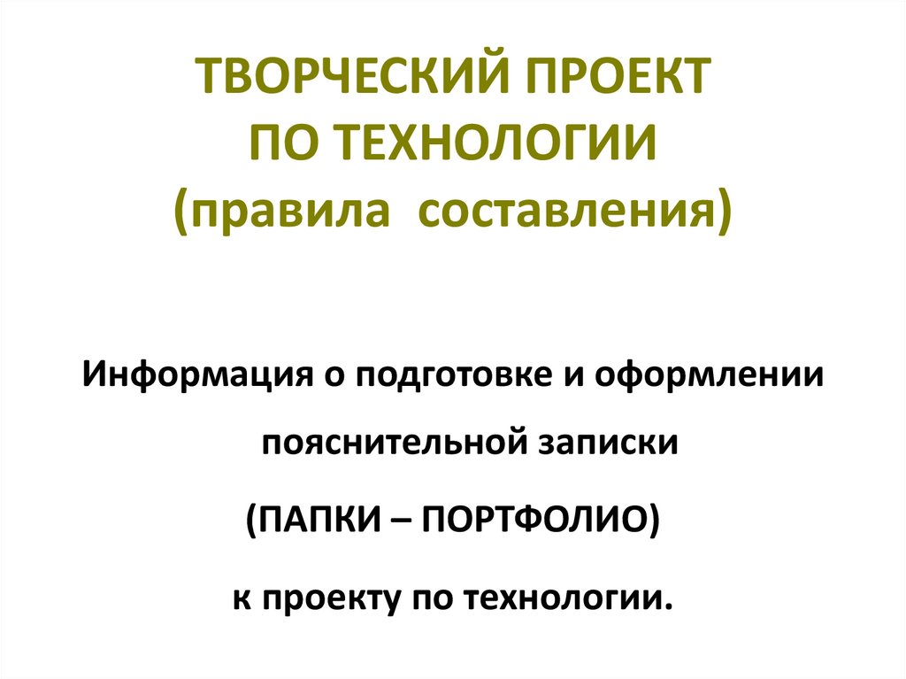 1. ТВОРЧЕСКИЙ ПРОЕКТ ПО ТЕХНОЛОГИИ (правила составления)