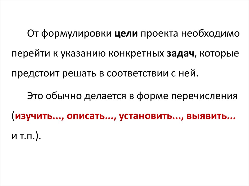 От формулировки цели проекта необходимоперейти к указанию конкретных задач, которые