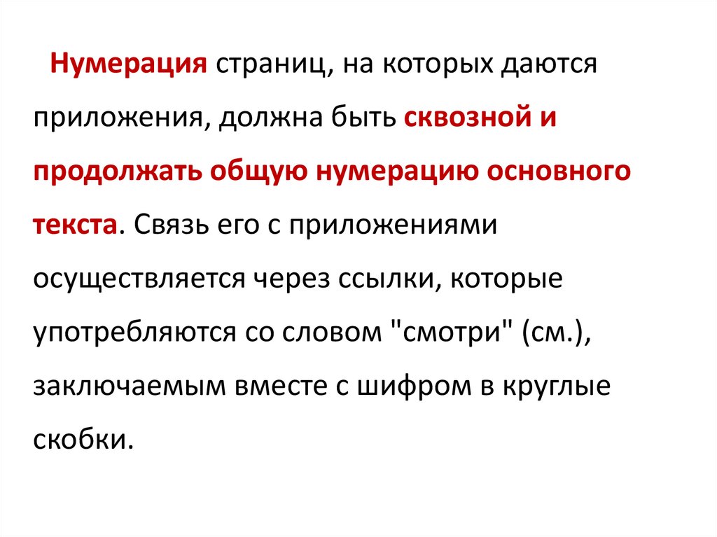Нумерация страниц, на которых даютсяприложения, должна быть сквозной и