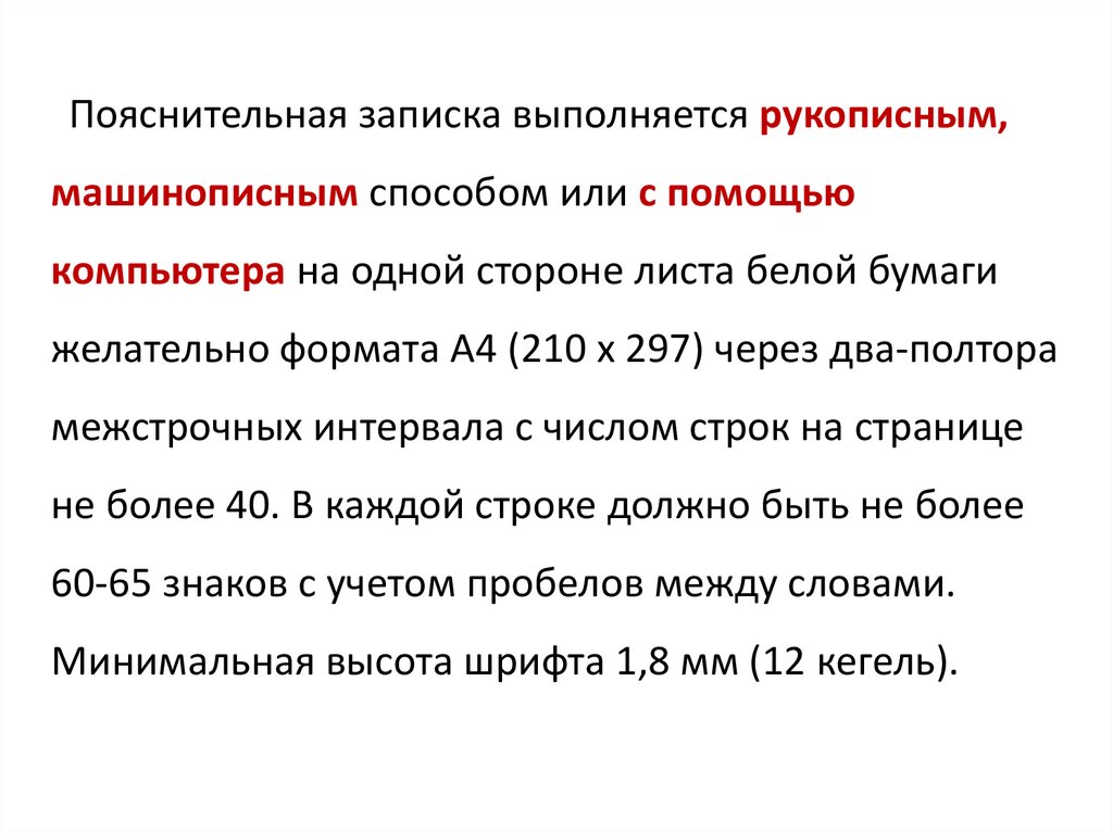 Пояснительная записка выполняется рукописным,машинописным способом или с помощью