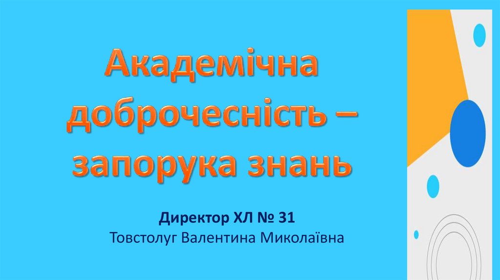 Директор ХЛ № 31Товстолуг Валентина Миколаївна
