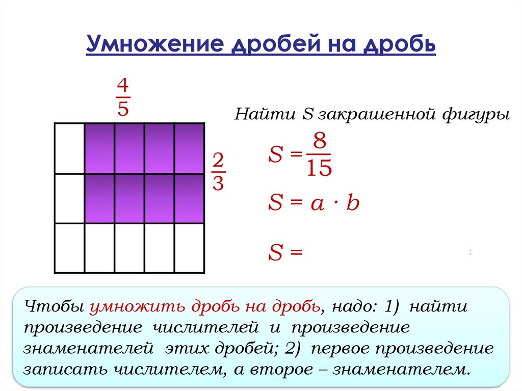 Чтобы умножить дробь на дробь, надо: 1) найти
