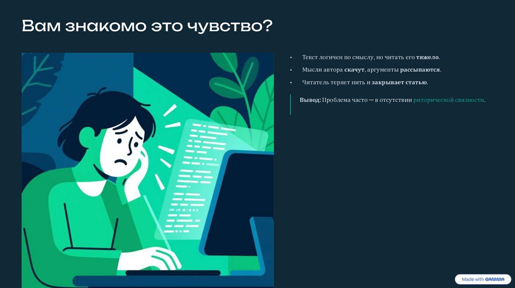 Вывод: Проблема часто — в отсутствии риторической связности.